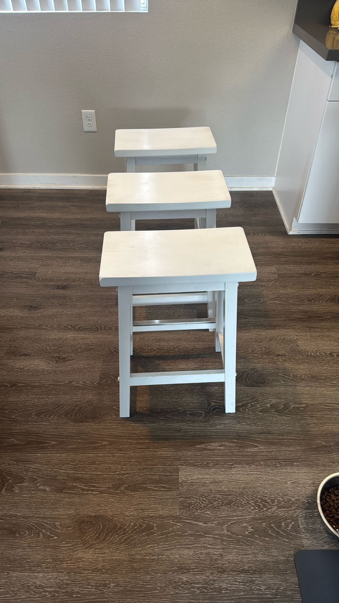 3 white barstools. Perfect for a kitchen island or bar.