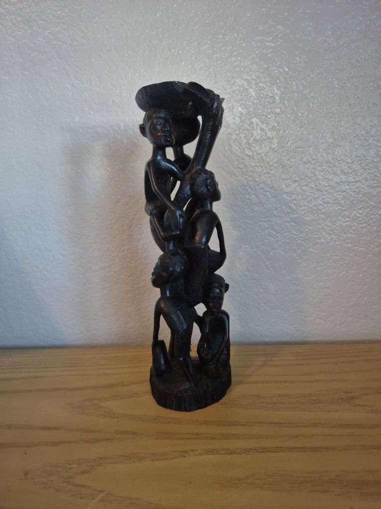 Handcrafted. Bought in Tanzania in 2003. About 11 in tall and 3 in in diameter. A conversational piece! Comes from one piece of wood. Cash only pick up Temecula.