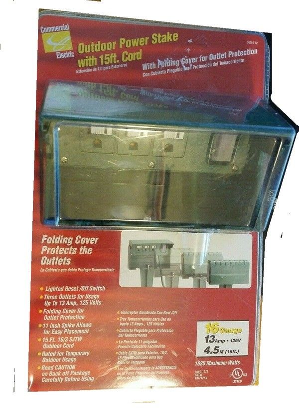 Outdoor 15 Foot Power Outlet Stake Retail Package