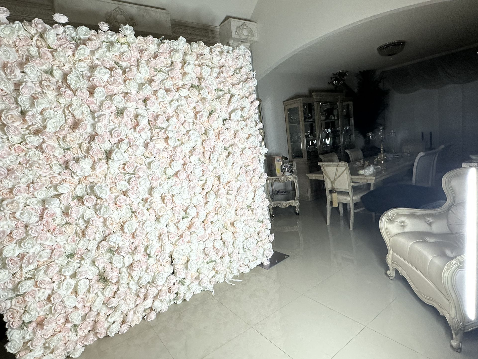 BEAUTIFUL 3D te FLOWER BACKDROP Authentic flower feel and design any special occasion: Weddings Quince / Sweet Sixteen Birthday parties Anniversaries Any event ! We also have a Photobooth and Audio Guestbook