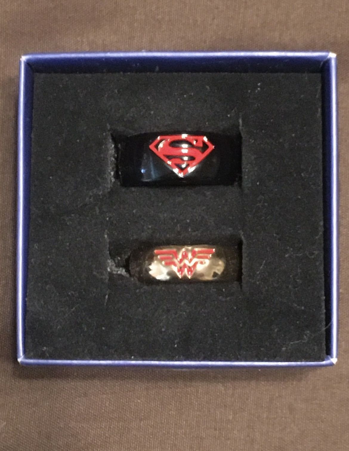 New box set DC superhero’s Superman and Wonder Woman wedding ring bands