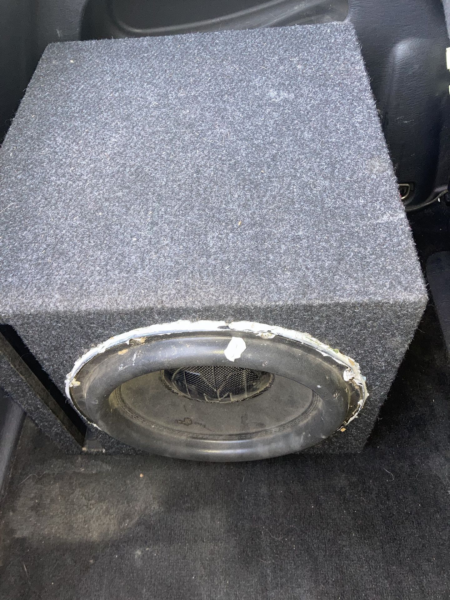$100 for sub obo $100 for box obo Works great small hole where the white is on the sub, the white around it is mostly silicone from an old box, is only on the sub and can be scraped off. Box has some screws in it and wood for reinforcement on the port