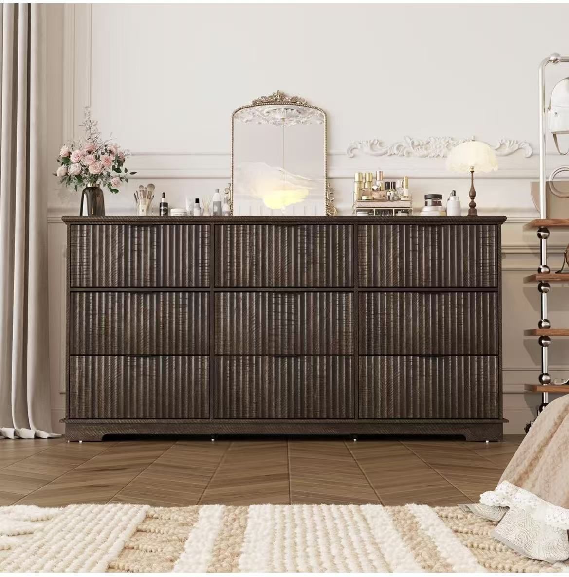 SinCiDo 58" Grooved Comfortable Wooden Chest of Drawers with 2 Drawers and 4 Doors, Modern Storage Cabinet for Living Room, Bedroom $170