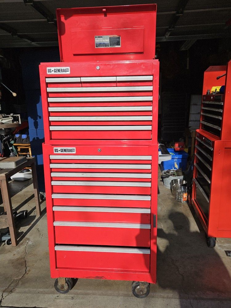 US GENERAL Heavy Duty Rolling Toolbox Full With Tools Including Keys