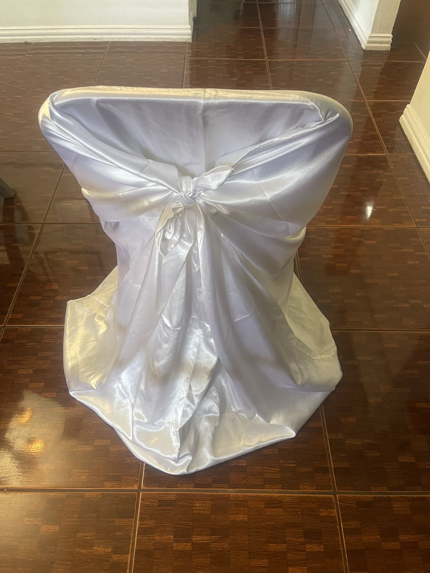 Vendo cubre sillas blanco y negros, beige. En buen estado, para decoración de fiestas. Cubre mantel de varios colores.