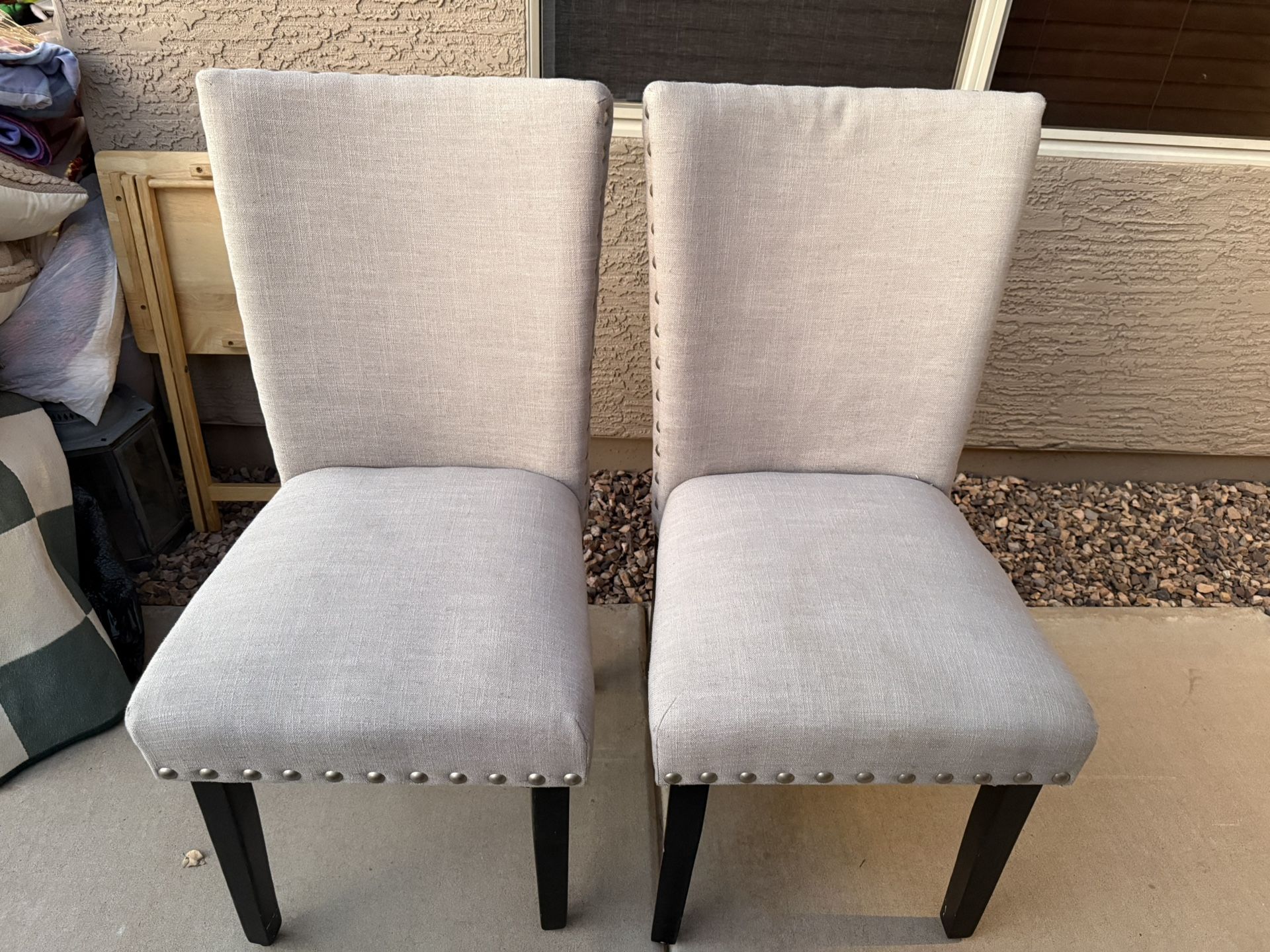 Pair of grey chairs with silver studs Good condition some stains, price reflects Non smoking home Local Pick Up Only