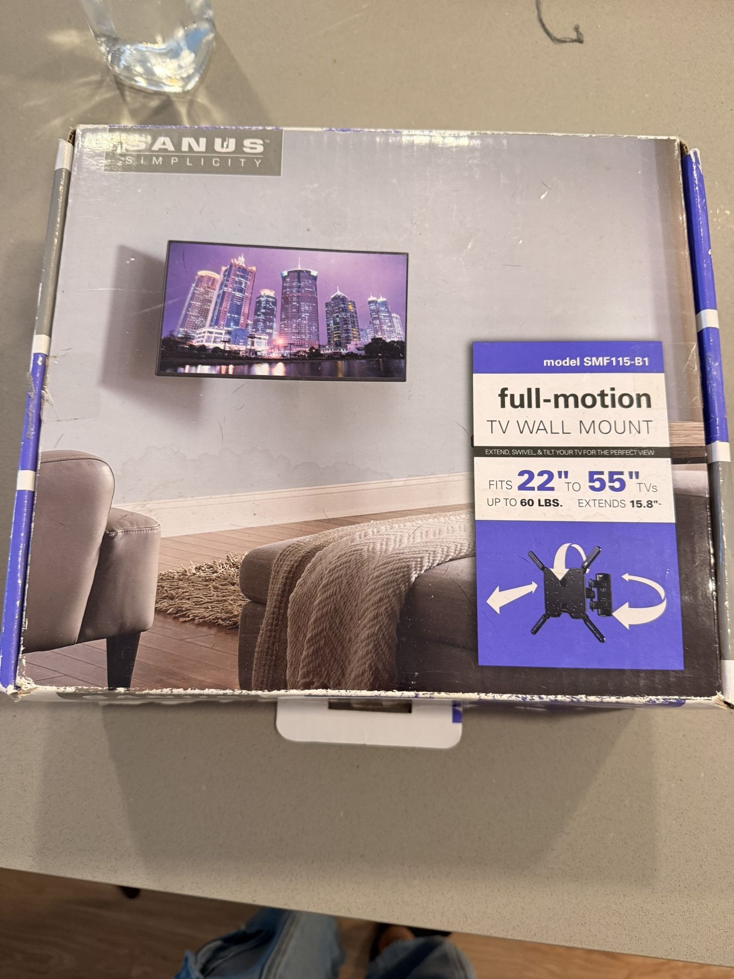 Full motion Tv Wall mount Fits 22” to 55” tvs Opened but never used. All pieces are still included in the box.