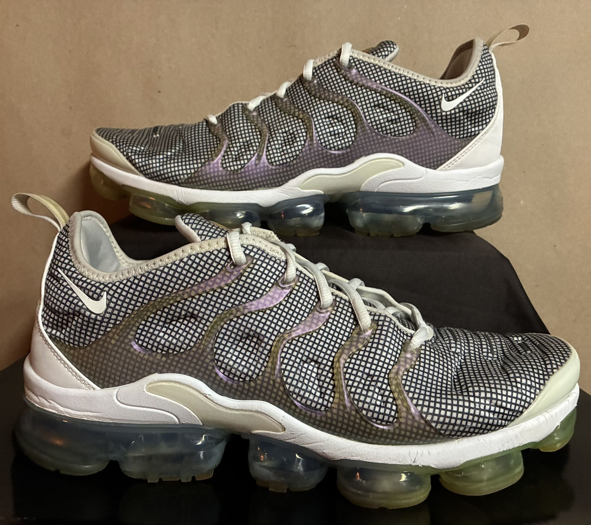 Hello, this auction is for the Nike Air Max VaporMax Plus. Grid Print. Size 11. These shoes are in great condition. No box. An everyday shoe you can wear with no remorse. Don’t be afraid to make an offer