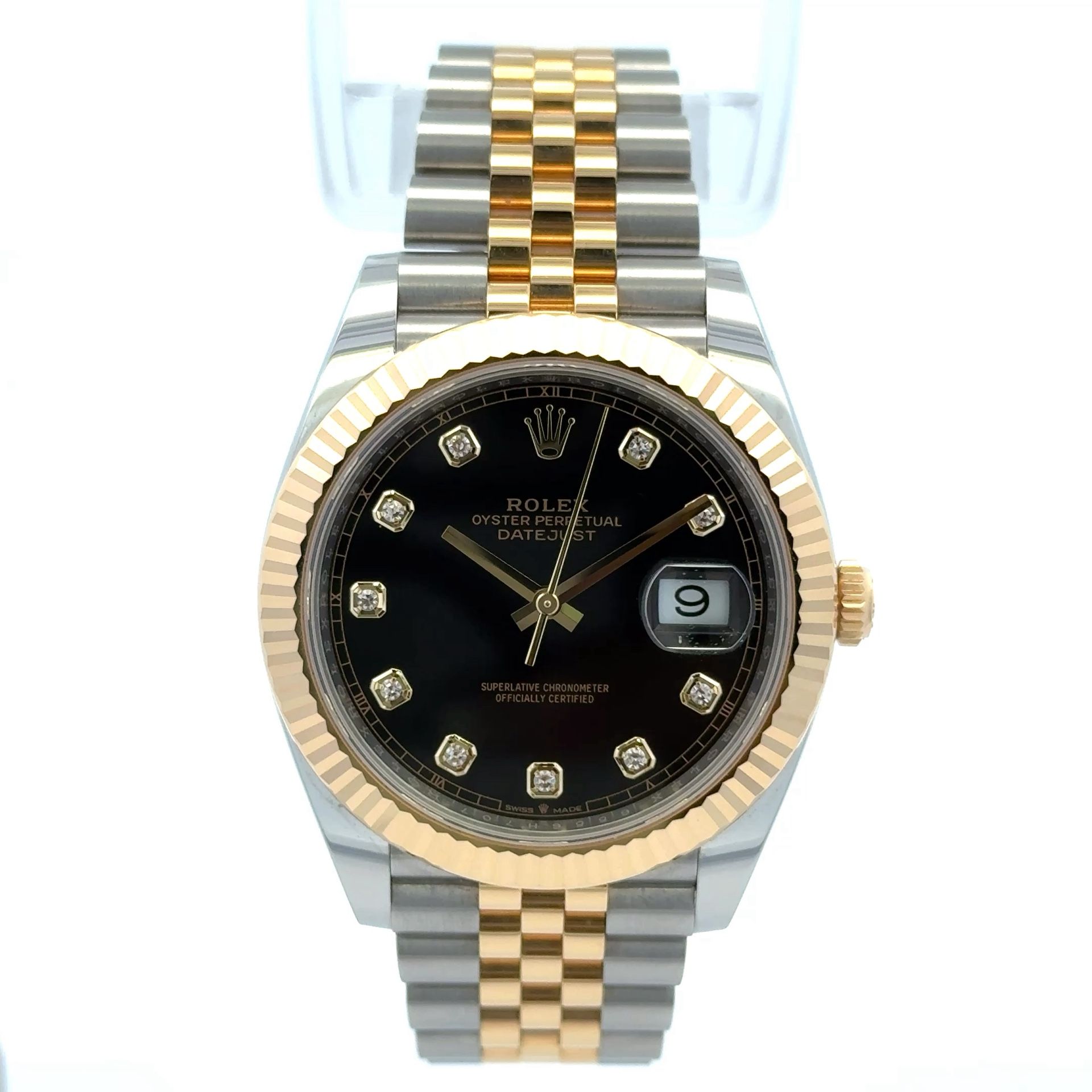 2024 Rolex Datejust #126333 - 41mm Jubilee Black 10 Diamond 18K Fluted Bezel Yellow Gold