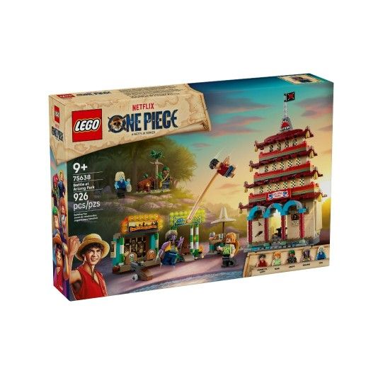 LEGO ONE PIECE Battle at Arlong Park includes 5 Straw Hat Pirates Toy Figures (LEGO Model: 75638) BRAND NEW in the FACTORY SEALED BOX Retails at Walmart for $80 PLUS TAX... My Discount Price is $50 NO TAX... No Yard Sale prices available, sorry... πππππππππππππππ DON'T FORGET TO CLICK ON MY PROFILE!!! I HAVE 100's OF OTHER GREAT ITEMS LISTED AT WHOLESALE LIQUIDATION PRICES!!! πππππππππππππππ Item Description, Details & Features: The epic showdown at Arlong Park comes to life as young ONE PIECE fans ages 9 and up join the Straw Hat Pirates in their battle against the tyrannical Arlong Pirates. This action-packed building toy recreates an epic confrontation from the Netflix series, where Luffy and crew fight to free Nami's village from the fishman's cruel reign. Kids create dramatic battle sequences with the collapsible pagoda that explodes when tapped firmly on top and set up a shooting gallery with targets for practicing aim with stud-shooters. The detailed set includes minifigures of Luffy with special arm-lengthening pieces to recreate his Gum-Gum attacks, navigator Nami with her staff, marksman Usopp, the villainous fishman Arlong with his saw-nose, and his crew member Chu. Authentic details like Arlong's throne room, the drink shack, and Usopp's iconic ketchup bottle in the forest bring the East Blue saga to life. Makes an idea present for boys and girls who love ONE PIECE figures, building toys, and creating their own pretend play anime battle adventures. The LEGO Builder app provides intuitive 3D instructions for an enhanced building experience. Contains 926 pieces. Epic Showdown: Builders ages 9 and up set the stage for an epic showdown with the LEGO ONE PIECE Battle at Arlong Park (75638) building toy for kids Straw Hat Pirates: Kids create legendary pretend play battles using Luffy (featuring arm-lengthening pieces), Nami, Usopp, Arlong, and Chu minifigures Pretend Play Features: Tap the top of the pagoda tower to make it explode, practice aiming at the shooting gallery, and place Arlong on his villainous throne Authentic Accessories: Set includes three "Wanted" posters, Usopp's ketchup bottle, drink shack, and Arlong's shark-themed headquarters Gift Idea: Makes an ideal birthday or any-time present for kids who love ONE PIECE action figures, anime, and building toys LEGO Builder App: Parents can help young builders navigate the LEGO Builder app with helpful 3D instructions and progress tracking Set Dimensions: Completed pagoda building measures over 11 in. (29 cm) high, 6 in. (16 cm) wide and 4 in. (10 cm) deep LEGO ONE PIECE Battle at Arlong Park includes 5 Straw Hat Pirates Toy Figures (LEGO Model: 75638)