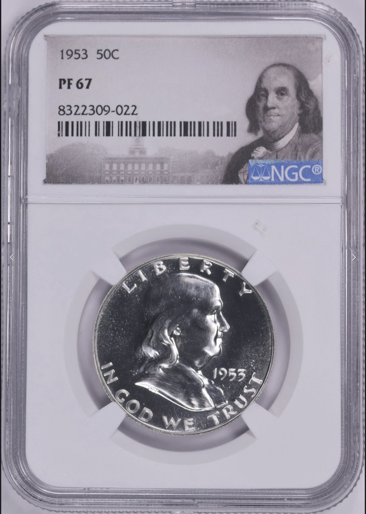 1953 Franklin Half Dollar NGC PF PR 67 RED-001 Franklin Label + 4 Free Wheat Pennie’s