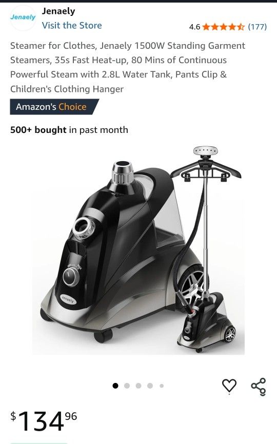 Steamer for Clothes, Jenaely 1500W Standing Garment Steamers, 35s Fast Heat-up, 80 Mins of Continuous Powerful Steam with 2.8L Water Tank, Pants Clip & Children's Clothing Hanger