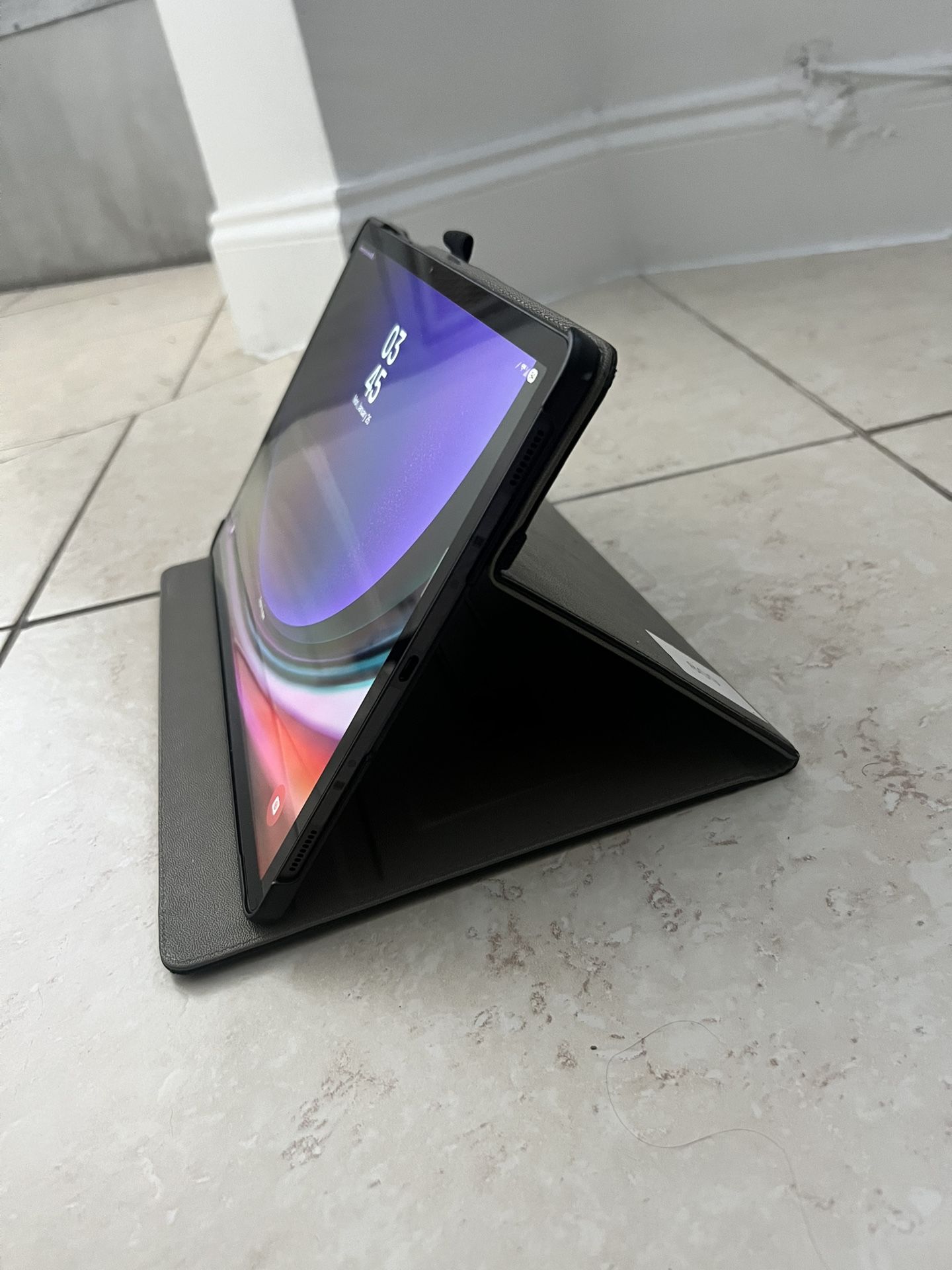 This is the powerful and versatile Samsung Galaxy Tab S9+ in the spacious 256GB configuration with 5G cellular connectivity. It’s in excellent condition, fully functional, and comes with a high-quality leather case for immediate protection and style. Perfect for work, streaming, and on-the-go productivity. · Model: Samsung Galaxy Tab S9+ 5G · Storage: 256GB (expandable via microSD card) · Network: Unlocked for 5G/4G LTE + Wi-Fi · Display: Gorgeous 12.4" Dynamic AMOLED 2X screen (120Hz) · Performance: Fast Snapdragon processor for smooth multitasking, gaming, and more. · Durability: IP68 water and dust resistant. · Battery: Excellent battery life. 📦 What’s Included: · Samsung Galaxy Tab S9+ 5G (256GB) – Device only. · Premium Leather Case (adds protection and has a stand function). ❌ What’s NOT Included: · S Pen is NOT included. · Charger or charging cable is NOT included. The device uses a common USB-C charger.