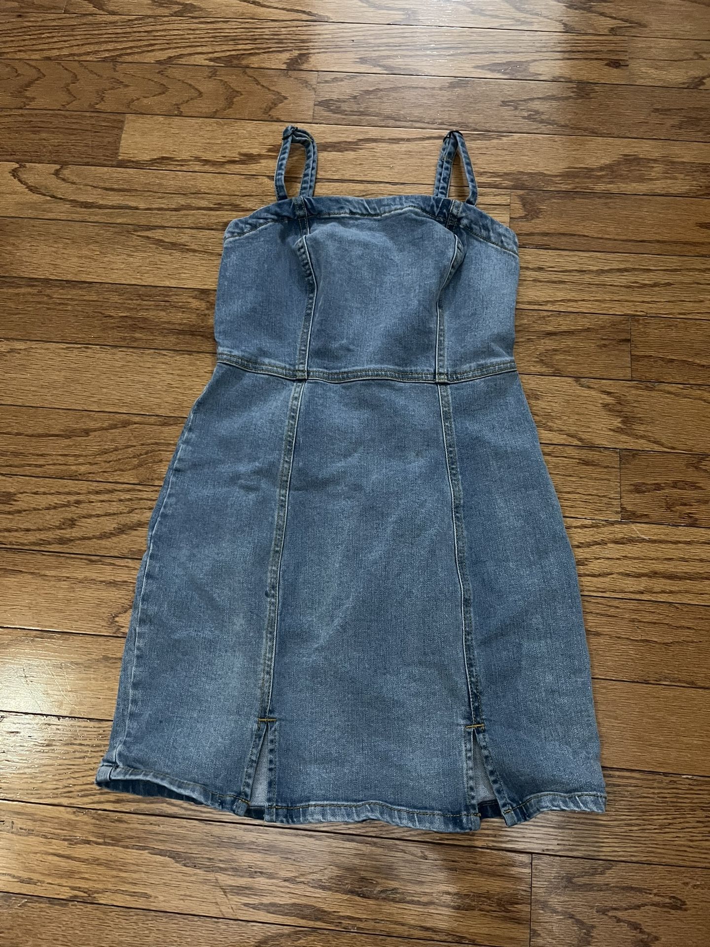 Denim Aeropostale Dress - Excellent condition, Aeropostale brand, medium wash, adjustable spaghetti straps, zip back, two small front slits. Size xs.