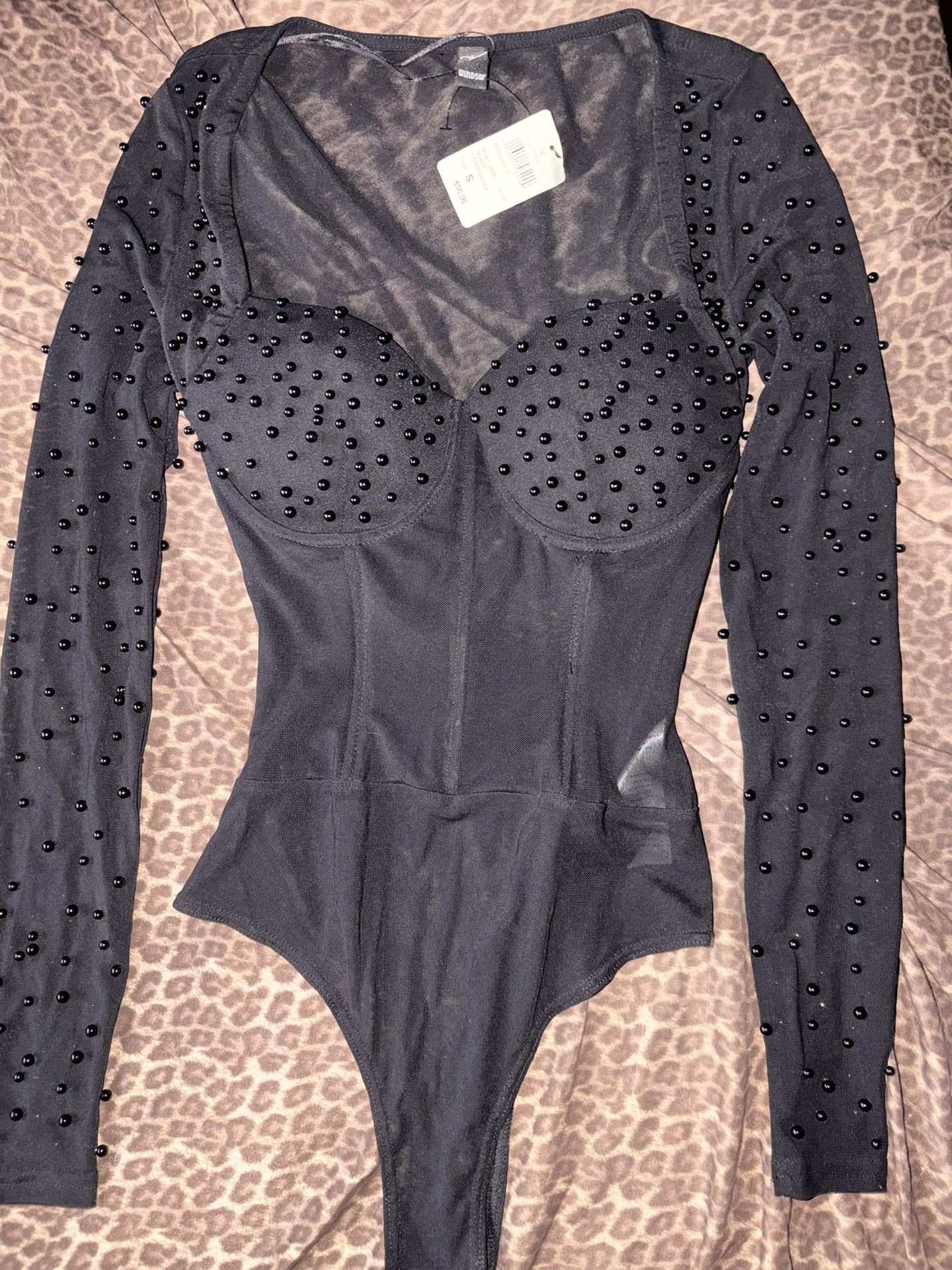 BRAND NEW Black Windsor Pearl Embellished Bodysuit