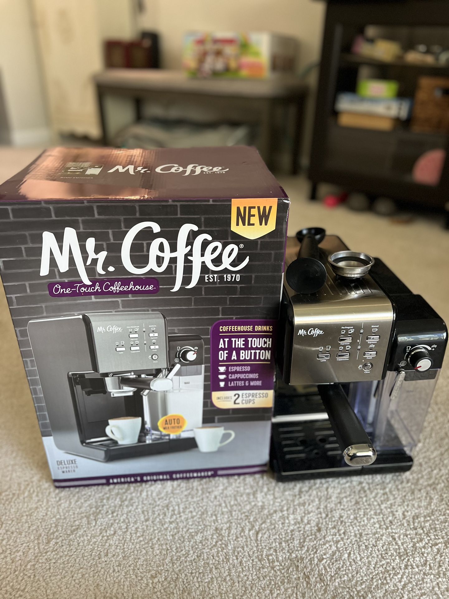 Mr Coffee One Touch for cappuccino and expresó like new barely used just couple times been in storage since then.