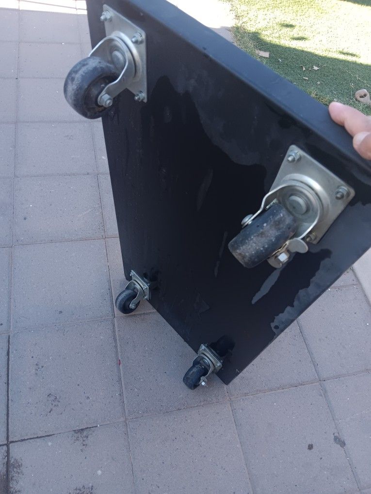 I have very sturdy metal platforms on wheels. They can be used as moving dollies or as a base for tool boxes or other. I have 3 of them, all the same. 36 inches long by 18 inches wide. 5.5 inches tall. Take all for 60thanks