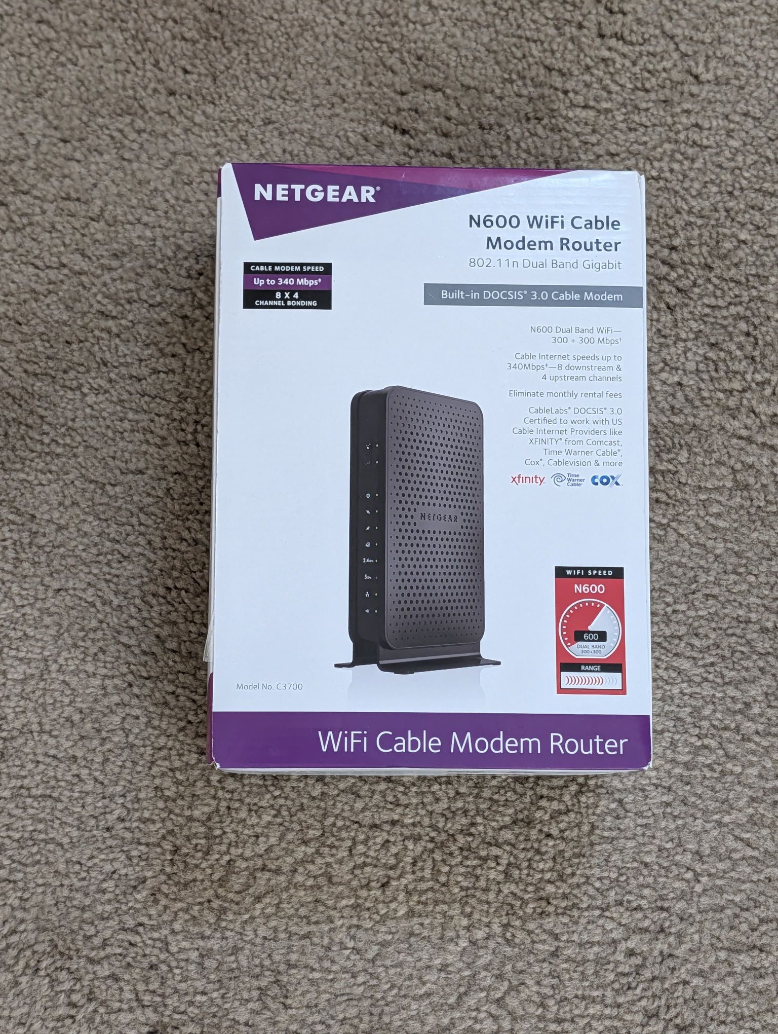 Netgear C3700-100NAS N600 (8x4) WiFi DOCSIS 3.0 Cable Modem Router (C3700) Certified for Xfinity from Comcast, Spectrum, Cox, Spectrum & More
