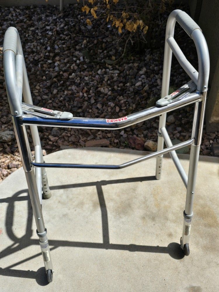 Used Medical Walker for Sale Are you or a loved one in need of a reliable walker for improved mobility? Look no further! I am selling a gently used medical walker at a fraction of the retail price. Features: Lightweight and foldable for easy storage and transport Height adjustable for a perfect fit Stable design with four sturdy legs Increases independence and mobility Provides support and stability while walking Improves confidence and safety