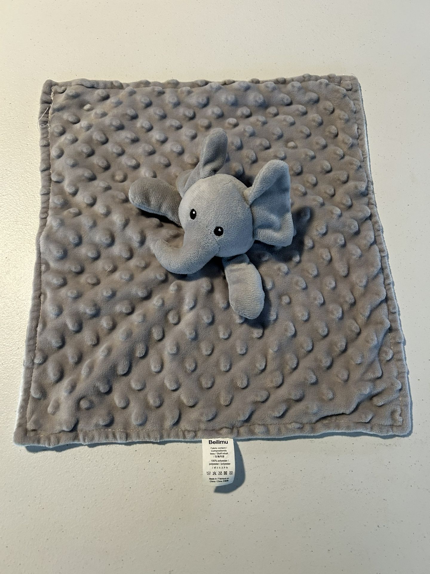 Beilimu Gray Elephant Baby Lovey Minky Security Blanket White Jungle Print Toy