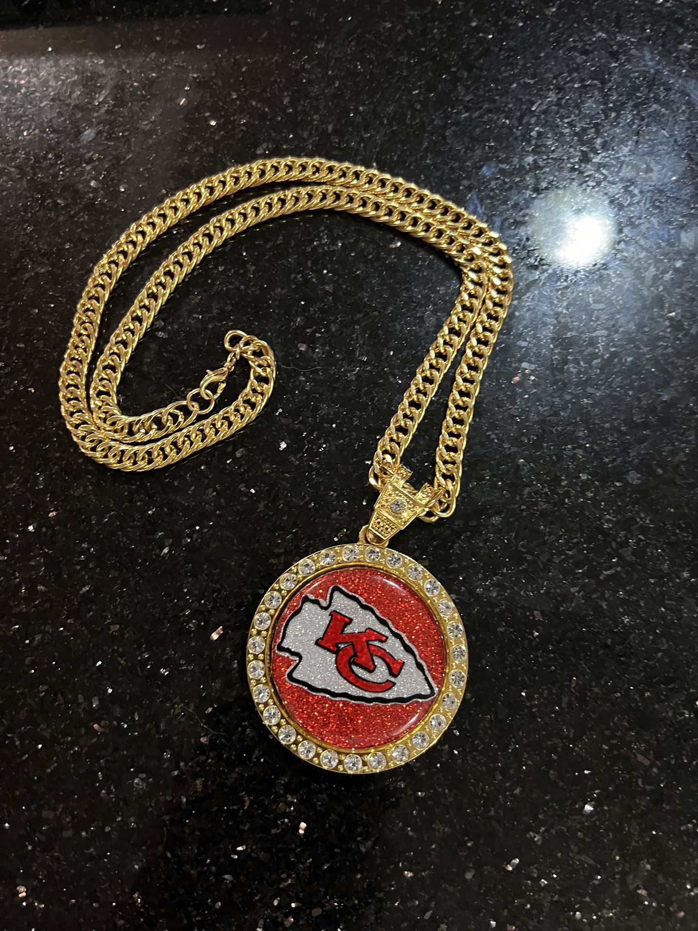 Gold Plated Chain with the spinning Kansas chiefs insignia.