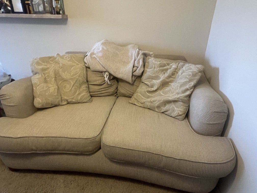 This is the spare/extra couch in the home, so was not used as frequently. No rips or stains. Main one is a matching set, and they are so comfortable! 😴 A Pet and smoke free home (: