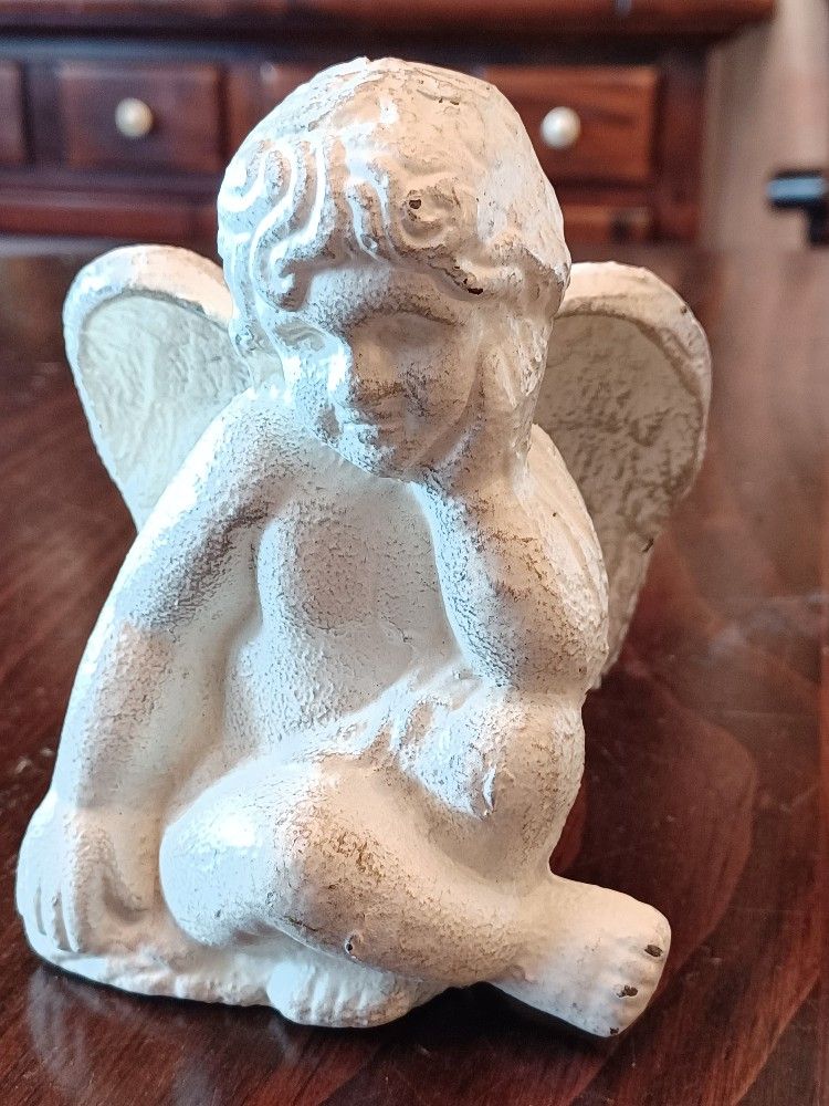 Cast Iron Angel Cherub/ Thinking.
