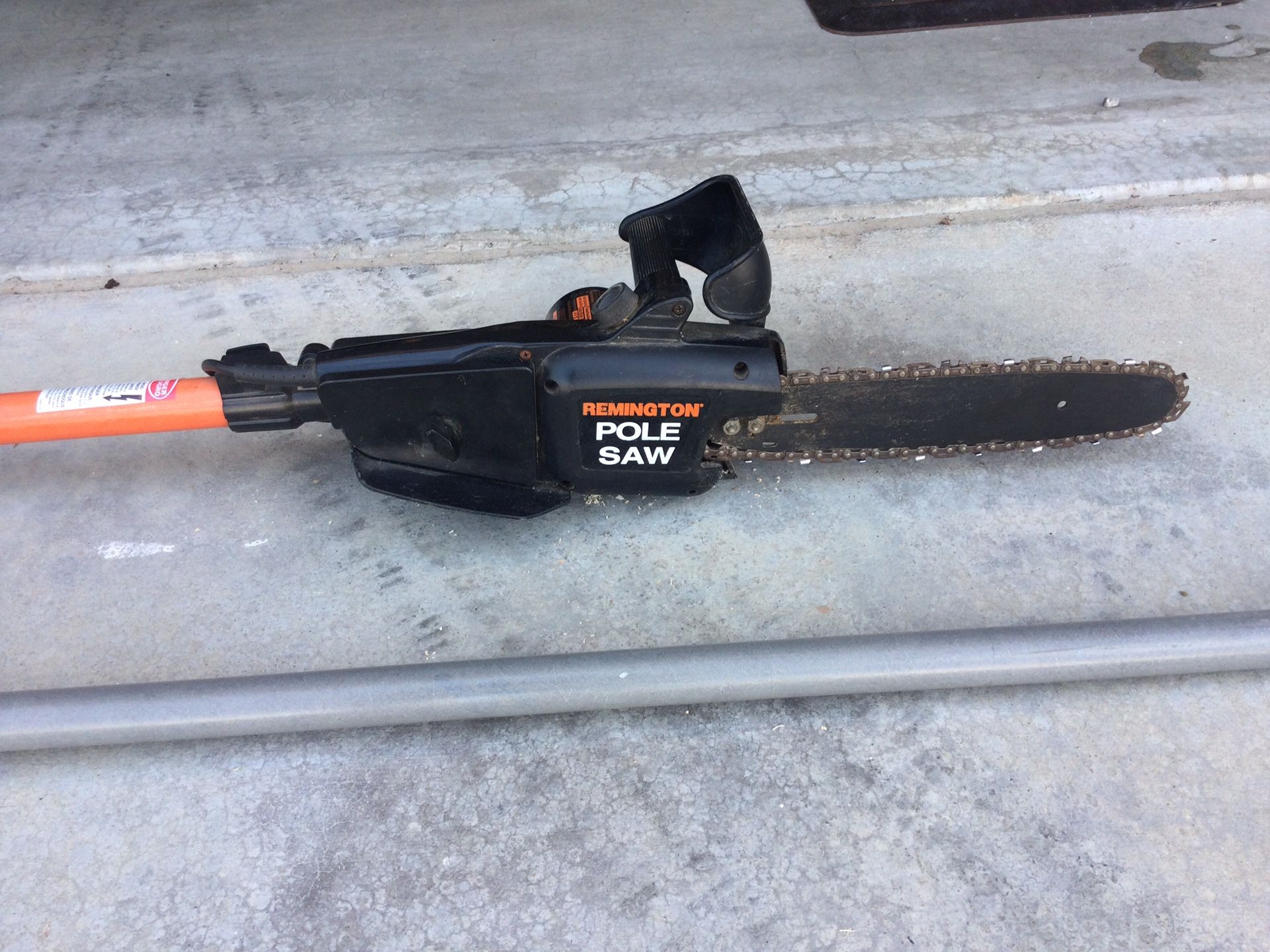 Remington electric 10 inch chainsaw pruner; chainsaw detaches from pole if needed. New $120 Manual extended pole pruner with added saw blade if needed. New $80 Make offers on one or both. (See other posts for 16 inch Craftsman electric chain saw & electric chain saw sharpener.)