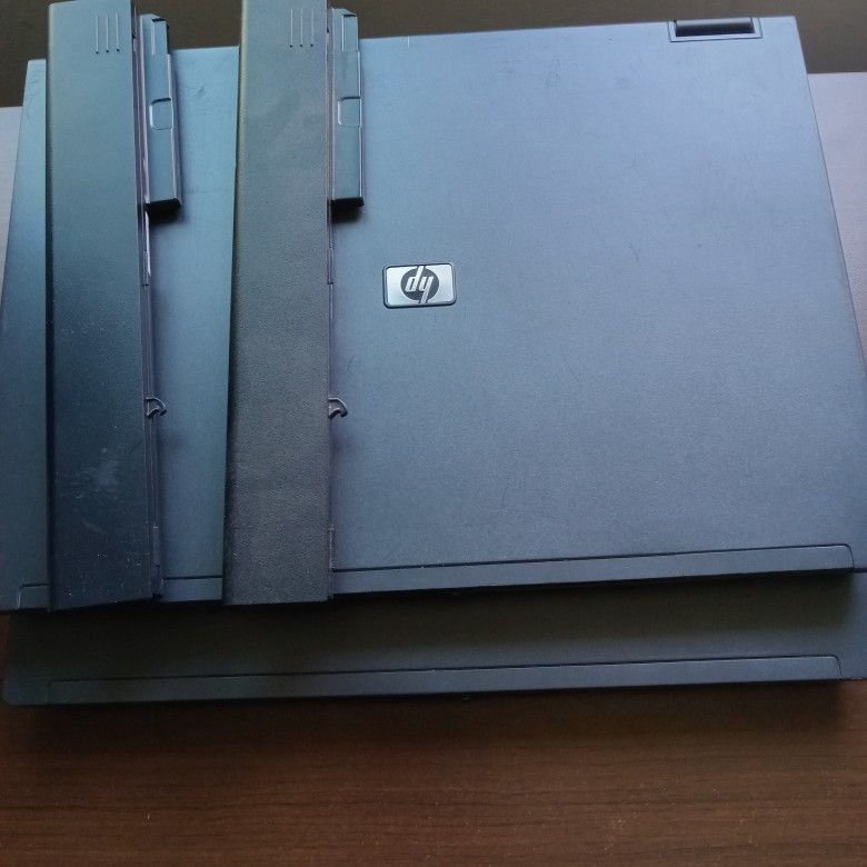 Two HP Compaq nc8430 (for parts) First boots to BIOS. CoreDuo T2400@1833MHz. 4GB RAM. Compatible with 32bit operating systems and software only. Screen appears to be in good condition. Operational. Missing drive, but has drive bay inside. Second missing parts. Powers on but unable to go int BIOS. Presumably has the same CPU as above and 512MB of RAM. Missing both drive and drive bay. Ports for both laptops have not been fully tested, but I don't recall having any issues with the USB ports, Ethernet, nor CD drive. Both compatible with Windows XP or Linux. Full compatibility with Linux untested--rtfm. Both have Windows XP product key but unsure if they work. Comes with two batteries, though unsure what their capacity or health is. Comes with two charging bricks but the cable connector for the outlet on both are missing.
