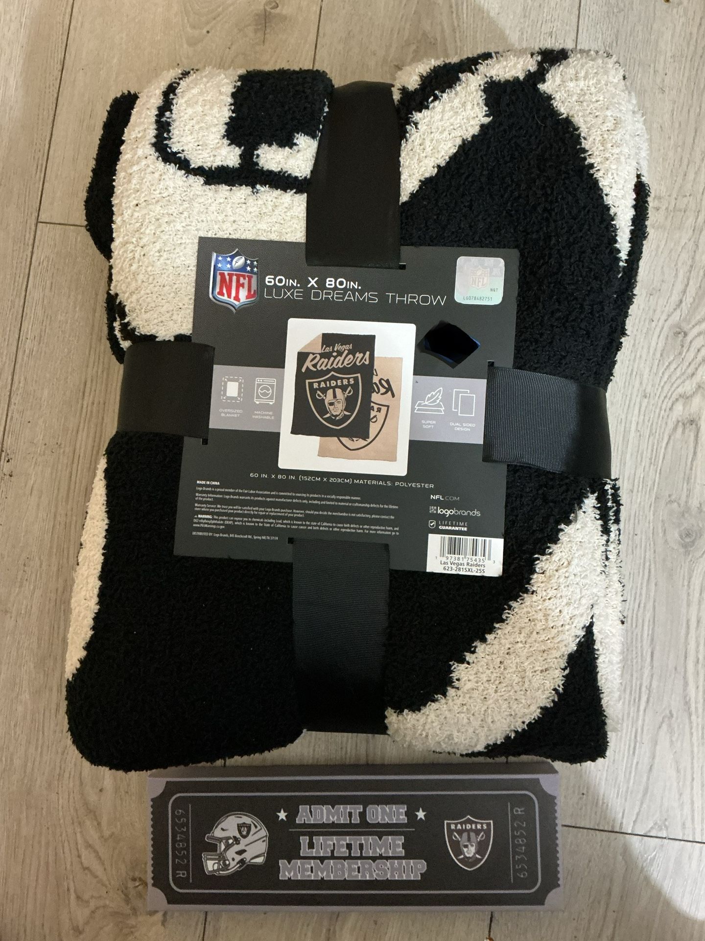 Las Vegas Raiders NFL 60" x 80" Plush Throw Blanket and A Wall DecorAdmit One