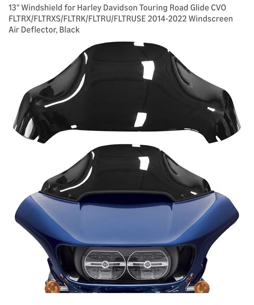 13" Windshield for Harley Davidson Touring Road Glide CVO FLTRX/FLTRXS/FLTRK/FLTRU/FLTRUSE 2014-2022 Windscreen Air Deflector Black NEW