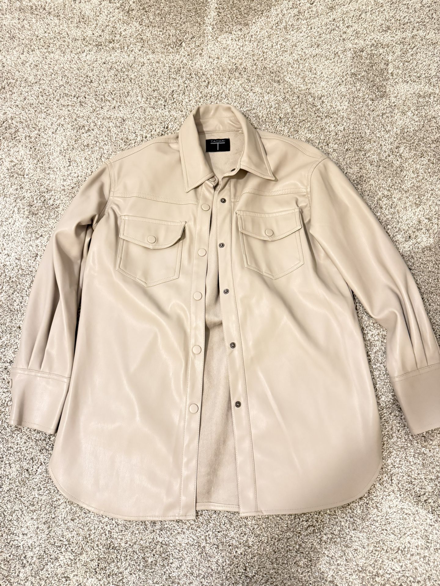 Tahari cream faux leather button up shacket
