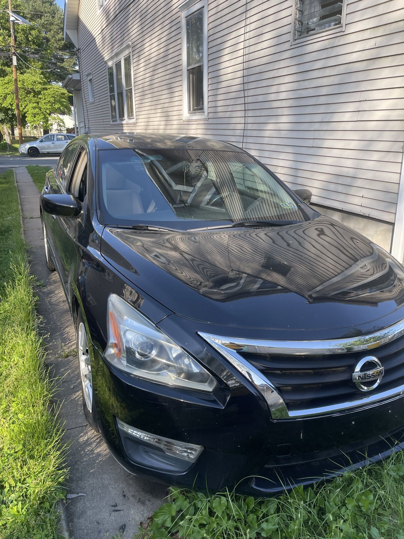 Buy AS IS 2013 Nissan Altima black sedan. Minor body scratch, headlight power supply is causing the bulb to be dim. Engine sounds like it is over heating. A brand new battery was installed but the car has not been driven for over a year. So the battery would require jumping. Car was running great last time it was driven.