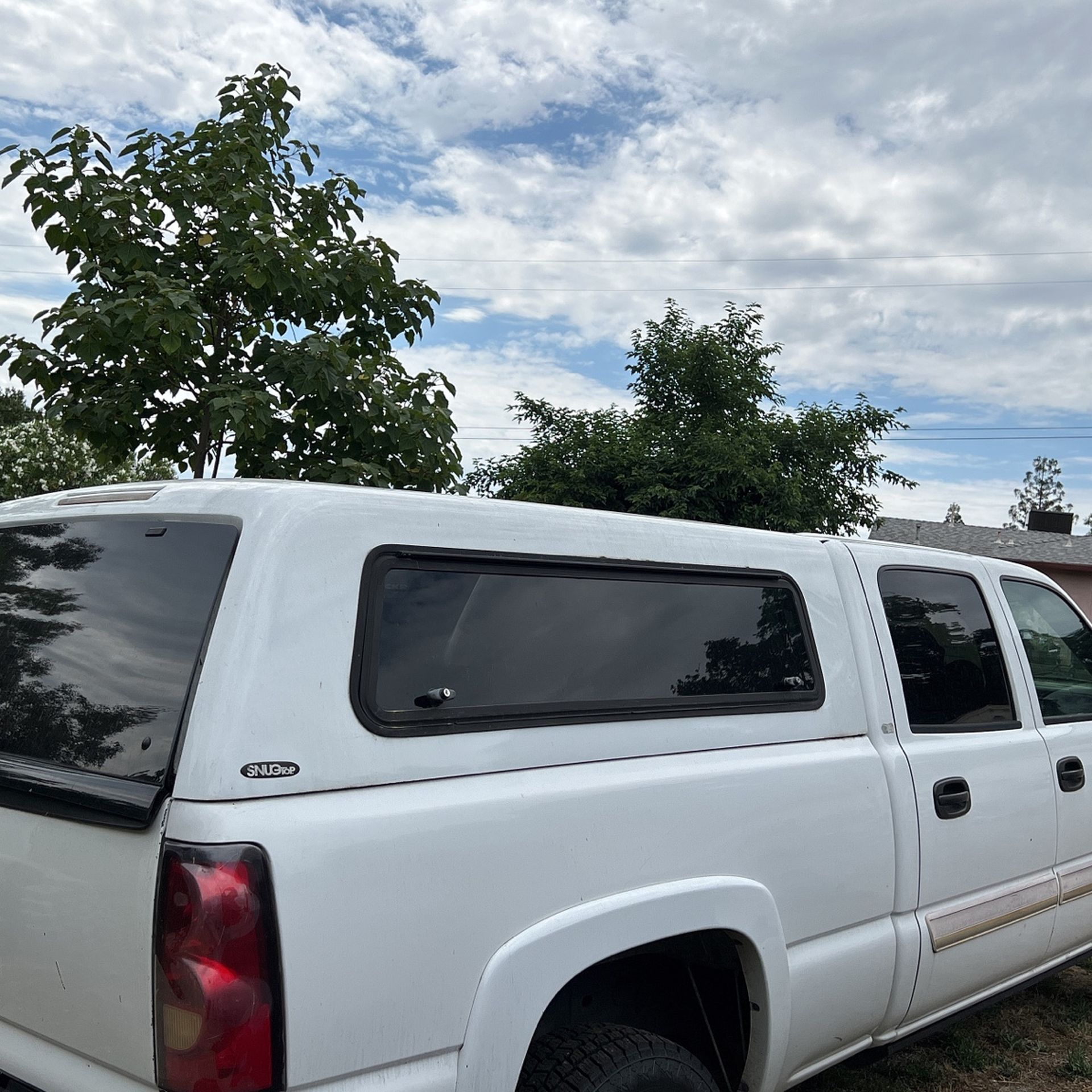 For sale snug top camper shell white from a 04 Chevy truck quad cab. $500.