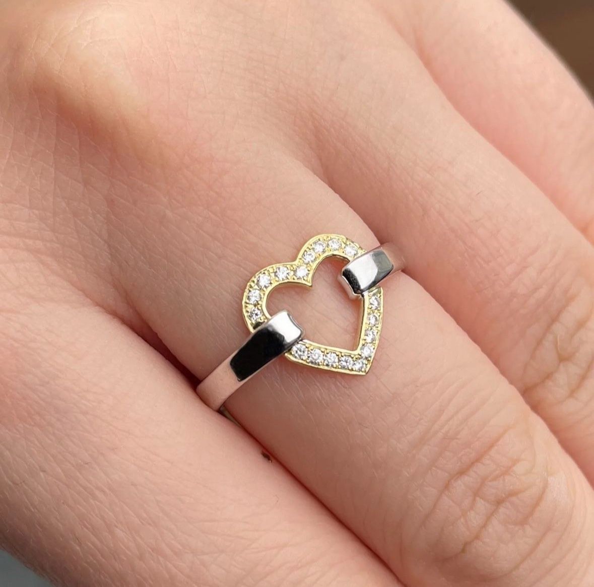 Tiffany & Co 18k Gold & Silver Open Heart Ring | Size (54) 6.75 | with Diamonds
