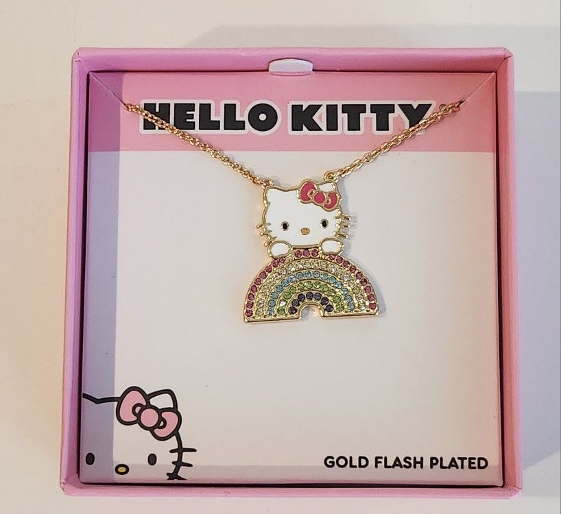 •Hello Kitty Brass Yellow Gold-Plated Rainbow Crystal Pendant 18” Necklace •Color: White/Rainbow/Gold •Brand new, never worn •Cash only •No shipping •No deliveries •No trades