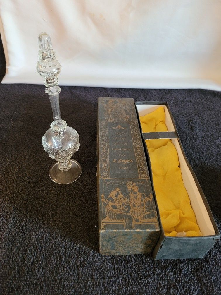 Beautiful delicate hand made Copal perfume bottle. In original box never used. Amazing details very rare find.