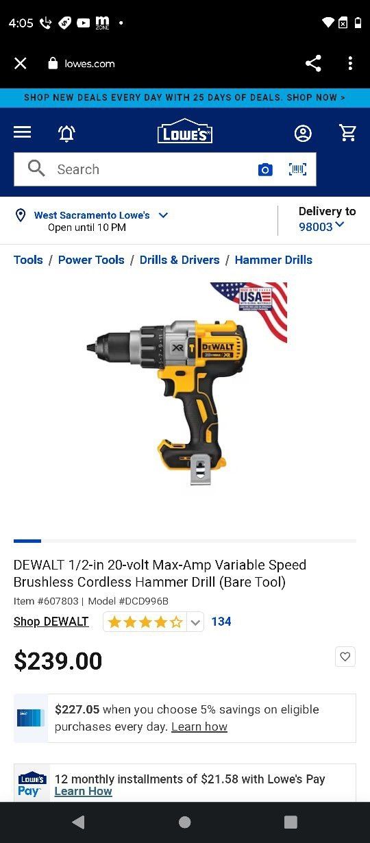DeWalt Cordless 1\2in 20v Hammer Drill