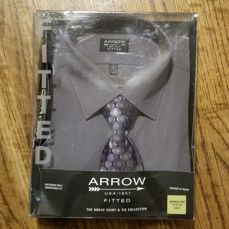 Arrow Dress Shirt & Tie Fitted Size 15-15.5