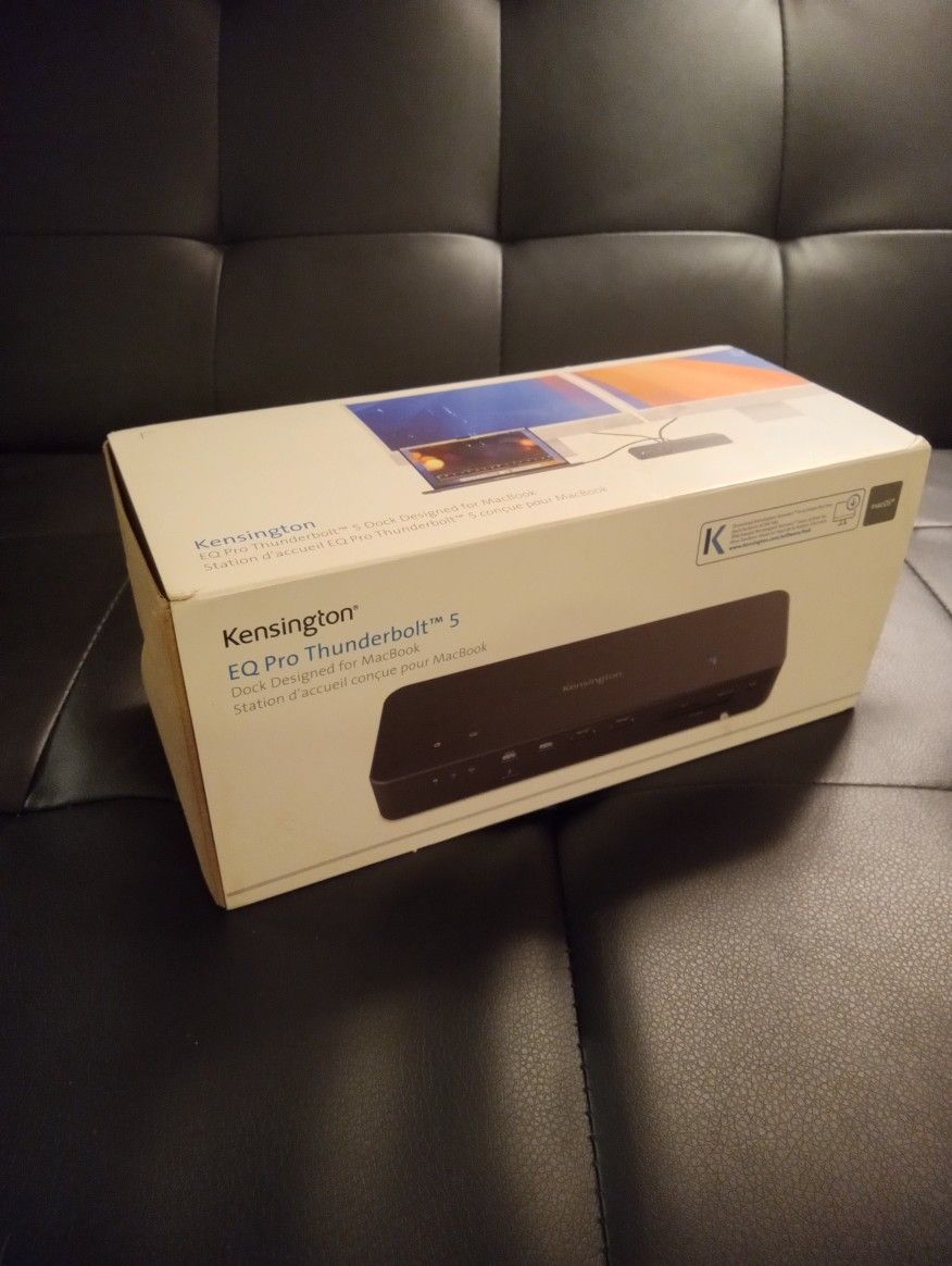 *NEW & UNOPENED IN BOX* High-end Thunderbolt 5 docking station for newer MacBooks (M-Series Pro, Max, or M4). Great for creators, video editors, neat freaks and speed demons. Plug-and-play on macOS 14.5+. One cable does it all: super-fast speeds, up to two 6K monitors or one 8K, and up to 140W charging for your laptop. 19 ports (yes, 19!) in total: Thunderbolt, USB-A, USB-C, SD/CF card readers, Ethernet, audio, plus a built-in M.2 SSD slot for extra storage (SSD not included). Retails for ~$500 ($450 + 8.75% tax).