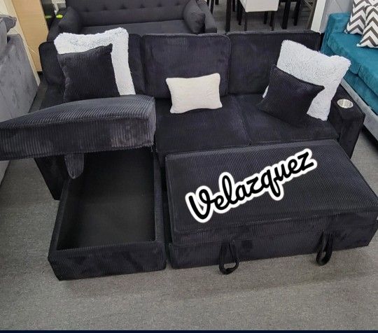 ✅️✅️Black Color Convertible Sectional W/ Cup Holder & W/ USB Port✅️✅️