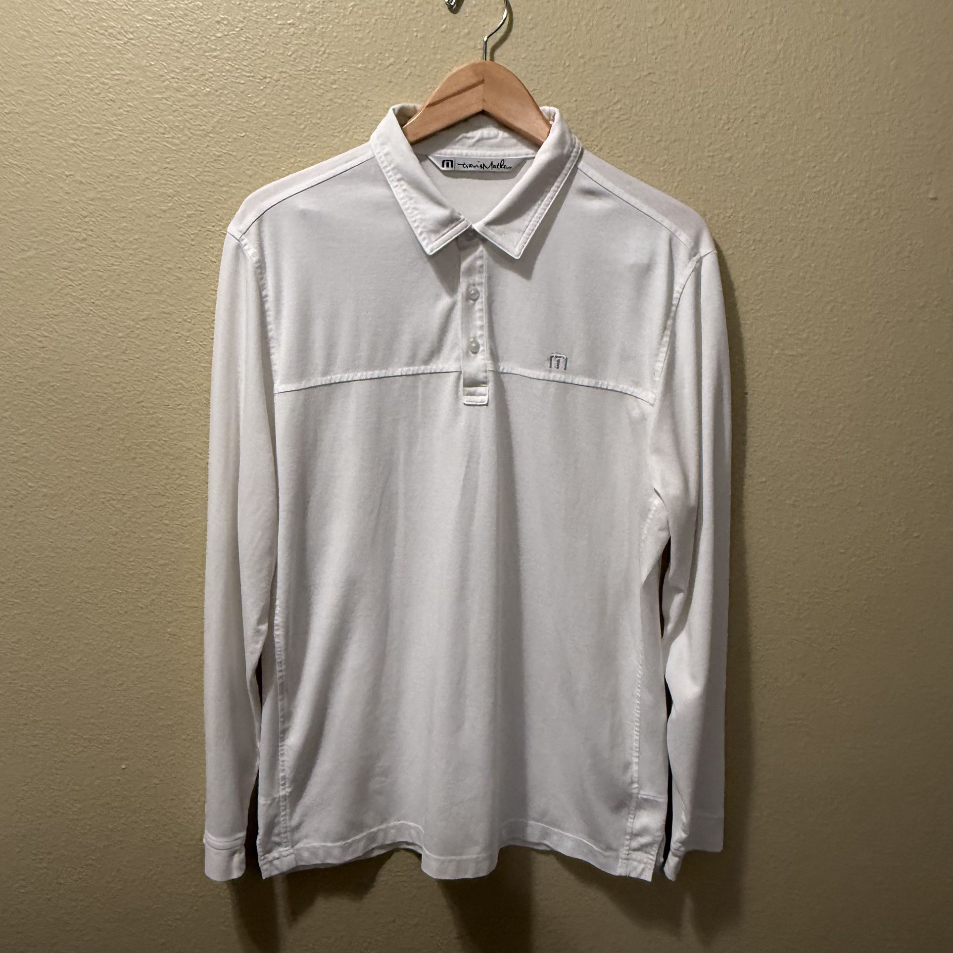 Men’s Large Travis Mathew White Long Sleeve Polo Golf Shirt