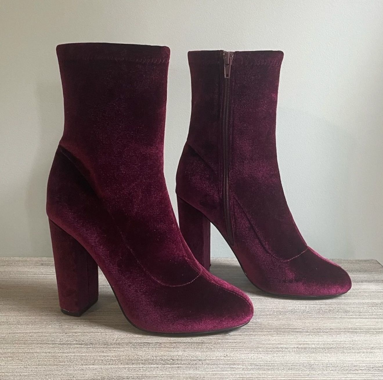 LFL by Lust For Life Maroon Velvet Ankle Boots - Size 8