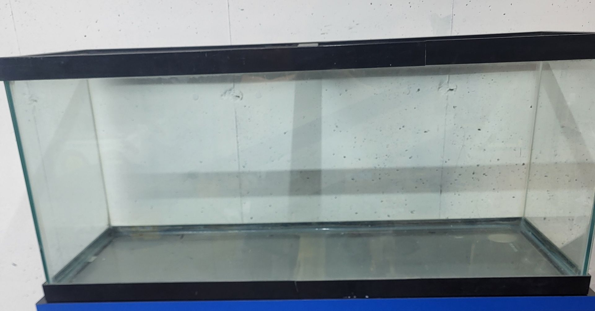 75 gallon fish tank for sale. There is some damage to the plastic around the tank (shown in pictures) but it does hold water and does NOT leak. $80 obo