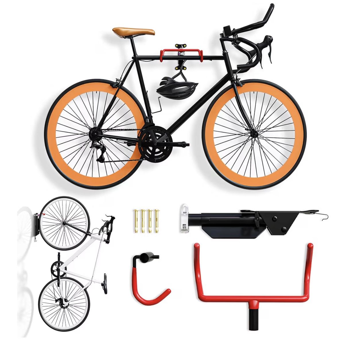 2 Pack Wall Mount Bike Rack Garage - Mountain Bike Wall Mount Horizontal Vertical Design with 66lbs Cap, Screws, Installation Manual - Secure Road Cyc