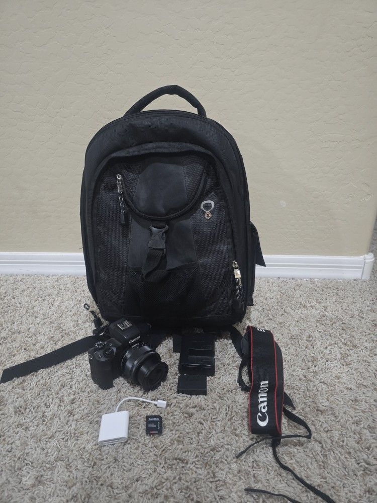 Canon EOS M50 Mark II Mirrorless Camera + extras! Priced to sell! Pickup on Chandler Blvd and McQueen Rd ☺️ No issues, works perfectly Superb LIKE NEW condition! Barely used at all No trades please No holds Comes with: Camera body Normal kit lens (EF-M 15-45mm STM) SanDisk Ultra 16GB SD card Camera strap Original battery Original charger SD card to phone adapter! Much faster and easier than wifi transfer Huge excellent condition camera bag! Thanks for looking 😊