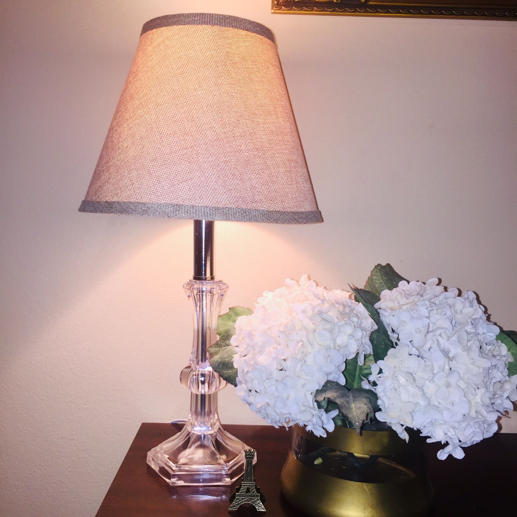 14”tall- Lamp stand/base 8”- Linen shade ***lightbulb not included***