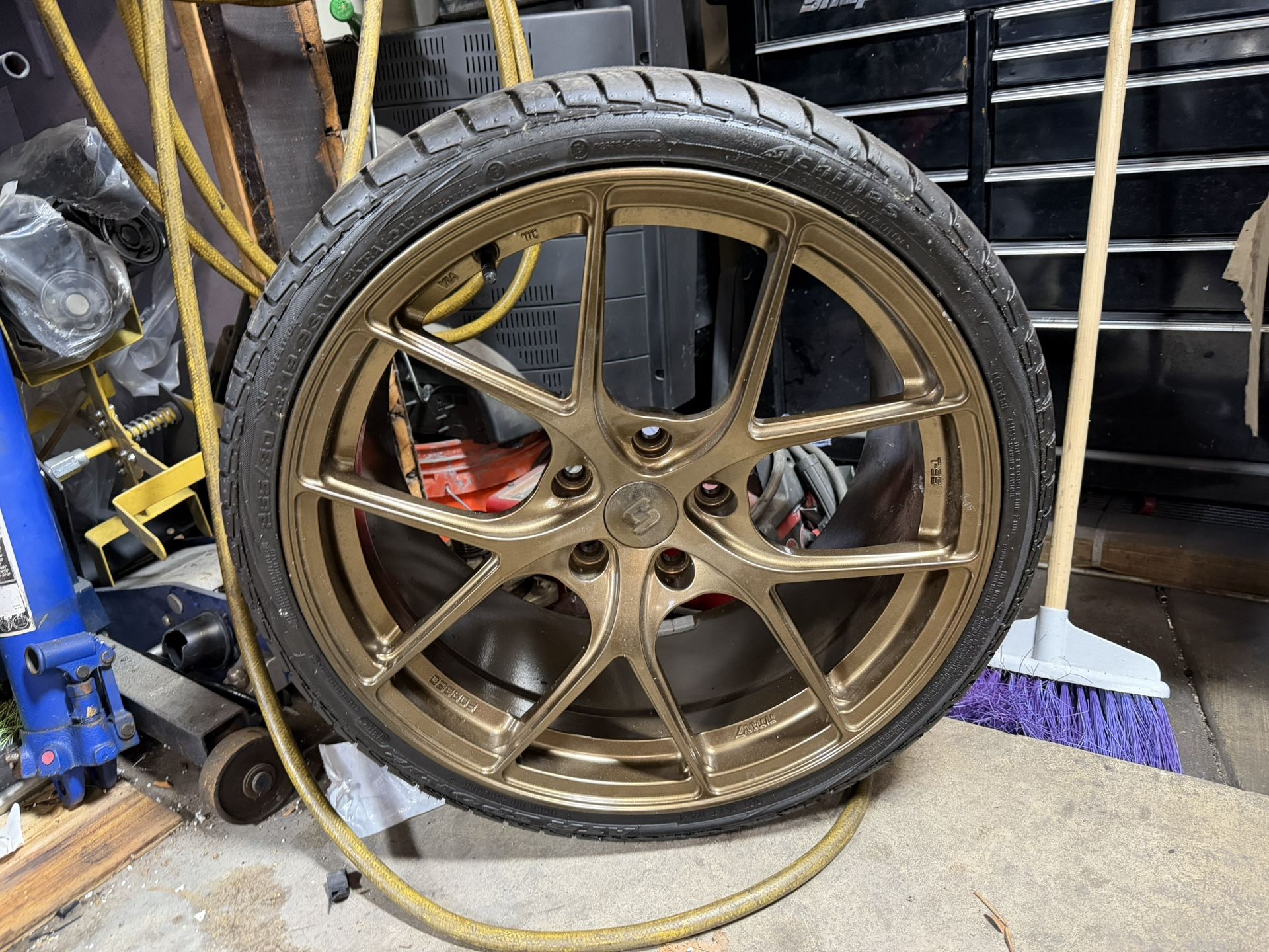 Only 3 wheels !!!!!!!!! Tires are garbage Tire size 265/30/19 tires still hold air Titan 7 T-S5 Wheel 19x9.5 5x112 34mm Techna Bronze These wheels sell for 900$ each new $900 for all 3 wheels or $300 for each Or offer up π Location in Chicago midway area