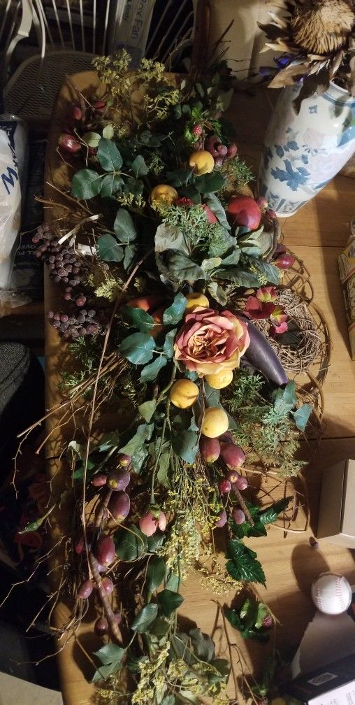 Wall swag for over door, fireplace, etc. Rustic farmhouse decor. It has fruits, flowers & berries throughout. 68" W x 24"H