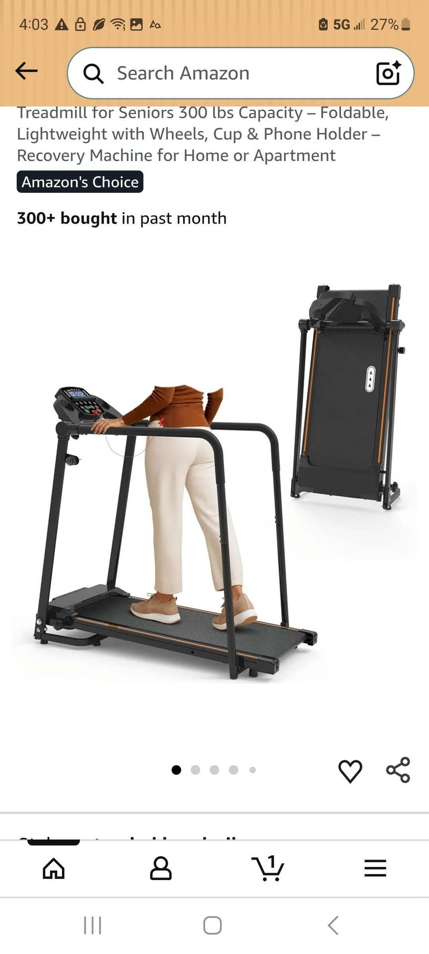 Redliro Walking Treadmill with Long Handrails – Treadmill for Seniors 300 lbs Capacity – Foldable, Lightweight with Wheels, Cup & Phone Holder – Recovery Machine for Home or Apartment $120
